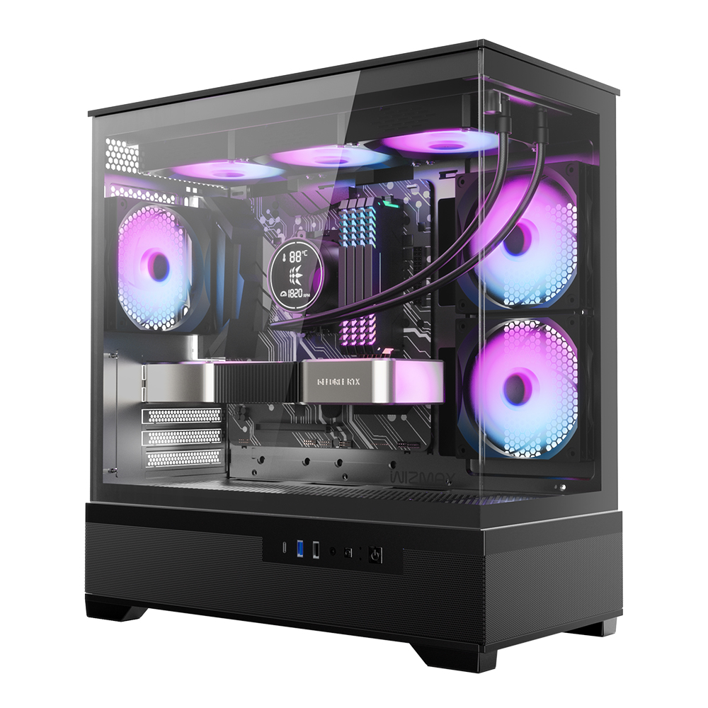 [October 2, 2024] – WIZMAX, a global brand specializing in gaming hardware design and manufacturing, has officially launched the WIZMAX ML-360 View, a compact PC case featuring a full panoramic glass display and three included aRGB cooling fans.